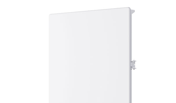 It works using built-in spring latches. Simply pull the panel door with your fingertips and it pops right off the wall. To close, press the latches down and push into place, creating a flush, seamless finish.